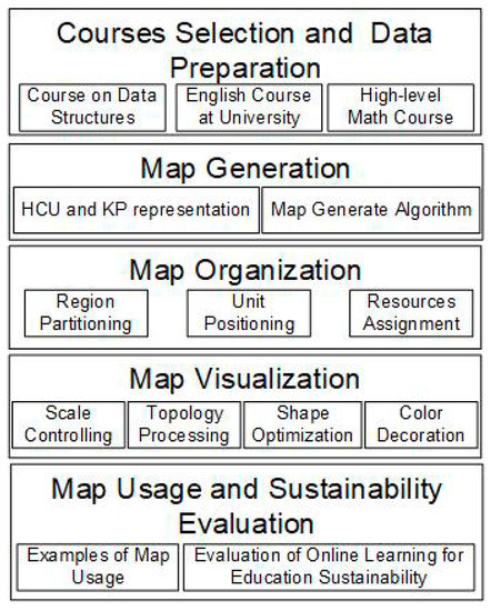 In the preparation stage, the evaluation information of the HCU will consist of the information volume and HCU category. The teachers will provide a value based on the definition. We will clearly state that, if the values for the information volume and HCU category are set at random, then a map can be generated; however, we used the teachers’ values based on their experience to generate a more reasonable map. This method does not need guaranteed values for the parameters.