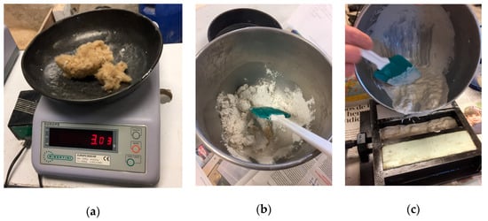 In all the samples, the CBW was mixed first with the gypsum and then it was all incorporated into the water (Figure 2a–c).