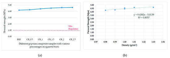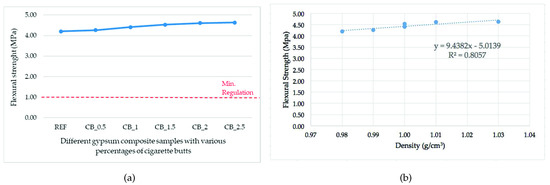 (a) Average flexural strength. (b) Density and flexural strength correlation.