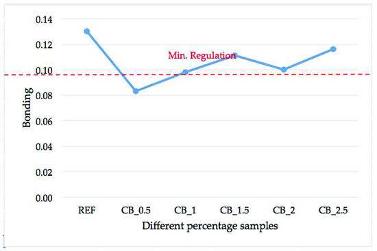 Bonding strength test was carried out in Series 2. Figure 9 shows the bonding strength values obtained for each sample containing different CBW percentage.