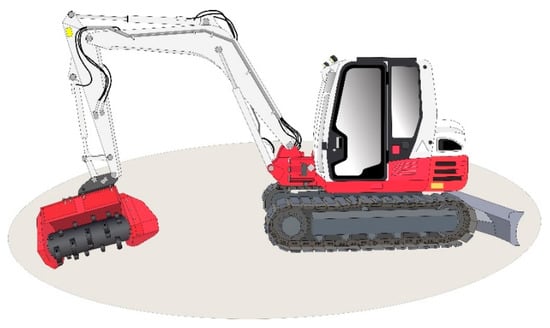Mini-excavator with a horizontal shaft masticator head used in mastication treatments.