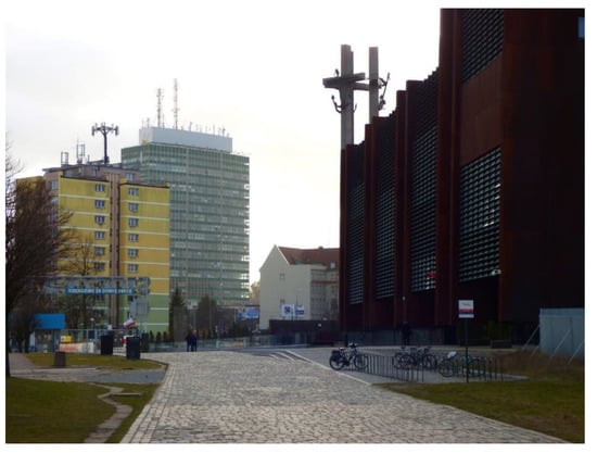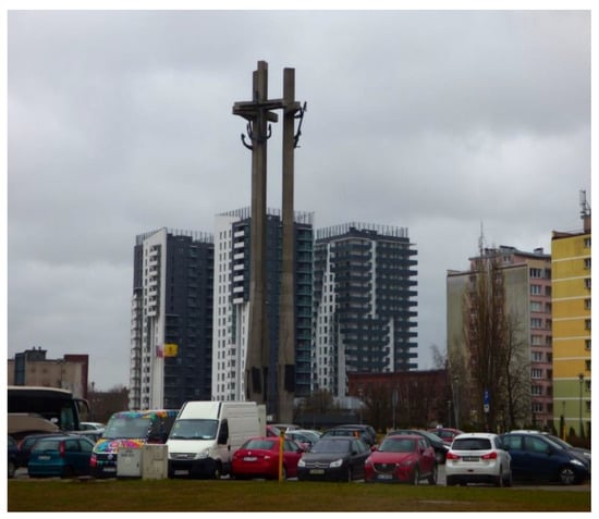 At the same time, the neoliberal urban regime is a change in the way the city is managed, leading to significant changes of public space, both physical and symbolical. Cities in the socialist system were not an autonomous subject of urban policy. They were planned at the national level with implementation at the local level, and were heavily subordinated to the interests of large industrial plants. This included the lack of restrictions in territorial expansion (extensive use of space), as well as specific rules in meeting the needs of their employees, leading to the state when the workplace was the main environment for building social relations [56] (p. 153). The most clear manifestations of neoliberal urbanism include the spilling of cities in the form of growing suburbs, the fragmentation of city space, and its social polarization materializing, among others, in the form of fenced settlements. These processes cause an inevitable increase in car traffic and changes in transport accessibility, but also erosion of public space. The city planning process is under increasing pressure from market values and “entrepreneurial” attitudes and gives rise to protests from permanent, more community-oriented residents [57]. This process can also be observed in the post-shipyard area, in the Young City in Gdańsk
