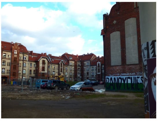 The building we stayed in is one of the several old, red-brick apartment blocks standing next to each other that create a small community (Figure 3). As an expert in urban policy in Gdańsk, who used to conduct in this area field studies with students, has explained to us, this area was the so-called “Bermuda triangle”—a place considered dangerous, where many social problems were observed. The feeling of abandonment, neglect, and lack of hope (as well as the concern of the residents of Gdańsk, which we interviewed in the rented apartment) was saddening. We wanted to interview people living in this building, earlier asking the owners of the apartment to help us make contacts, but their efforts proved fruitless and we were told the neighbors did not want to talk to us. We stayed there only for a few days, too short to build a mutual trust.