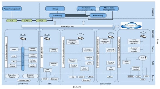 - Bruinenberg, J.; Colton, L.; Darmois, E.; Dorn, J.; Doyle, J.; Elloumi, O.; Englert, H.; Forbes, R.; Heiles, J.; Hermans, P.; et al. CEN-CENELEC-ETSI: Smart Grid Coordination Group—Smart Grid Reference Architecture Report 2.0; CEN-CENELEC-ETSI: Brussels, Belgium, 2012. [Google Scholar]