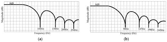 In the earlier analysis of the method presented in [20], the FIR filter was considered as a first-order low pass filter to verify the stability of PLL. In this section, the filtering characteristic of the FIR filter is analyzed under a wide variation in input voltage. If any voltage unbalances occur at a nominal frequency, then a ripple of double the fundamental frequency appears in the qd axis. These ripples result in the erroneous estimation of ‘θ’. However, a low pass filter is used to filter out the ripples, the response time of the system increases. To overcome that, a linear phase FIR filter is added to FPLL, which provides high attenuation to multiple fundamental frequency components.