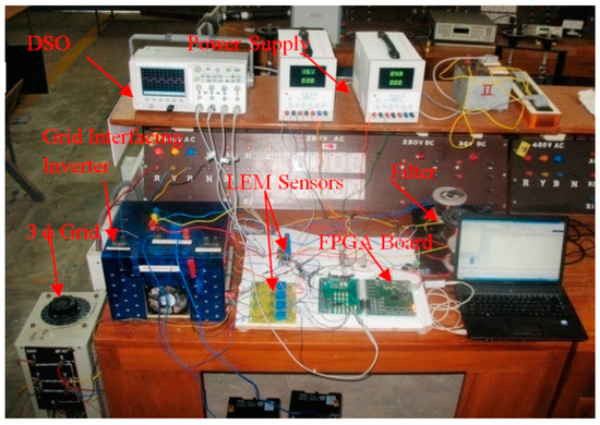 The simulation of the proposed frequency adaptive feed-forward PLL is simulated using MATLAB/Simulink, and the laboratory prototype is developed for a 3-ϕ, 415 V, 50 Hz source using an Altera Cyclone II field-programmable gate array (FPGA) board. In addition, the laboratory prototype of FPLL is developed to assess the results obtained using the simulation. The developed prototype is shown in Figure 6.