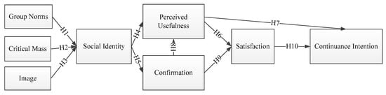 Song and Kim [52] argued that social identity was a key factor that influenced the intention to use specific technologies or systems on online activities. Kwon and Wen [53] indicated that social identity influenced perceived usefulness significantly. If individuals had higher recognition of their communities, they will have greater willingness to participate and share information in the affairs of the online communities. Several studies have also indicated that social identity should be considered on online communities and be a key influencer in their operations [9,10,11]. Social identity also helped users to engage actively with other members of the social media groups and participate more actively [12,13]. Taken together, we propose the following hypotheses: