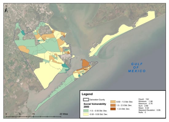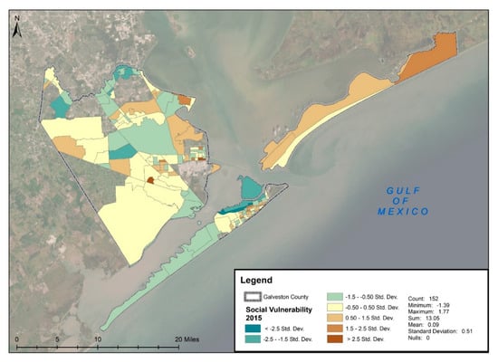In this paper, we examine the spatial and temporal adjustment patterns to the destruction wrought by the 2008 Hurricane Ike among vulnerable segments of the population residing in Galveston County, Texas. Our overall results indicate significant decline in social vulnerability (across various indexed measures) in hazard-prone block groups. While the decline in overall social vulnerability is suggestive of resilient recovery, such major changes may also indicate an overall change in community identity. The loss of population with long-established roots in coastal communities means the social memory of these groups may also be lost [14,15]. The loss of social memory and human networks from hazard displacement may in turn degrade the ability for a community, and its institutions, to systematically draw from past lessons [16]. Further, there are many measures, that vary across geographies and catastrophes, both quantitative and qualitative, economic, and ecological that can be used to measure a place’s vulnerability and resilience [17,18,19].