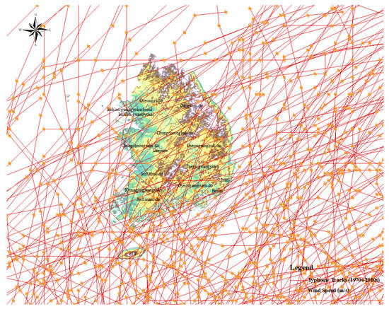 Second, this study quantified the risk of building loss due to changes in typhoon patterns as a result of climate change. To quantify typhoon risk, this study used the Korean typhoon vulnerability function of major users of catastrophic (CAT) modeling: insurers, reinsurers, and suppliers. The buildings were divided into commercial, industrial, and residential types for analysis. As shown in Figure 1, this study was limited to typhoons that affected S. Korea from the 1970s to 2010s. Therefore, the research scope of this study was limited to S. Korea and reflected the architectural design standards and planning strategies of S. Korea. The results may be different in countries with different geographic or architectural design standards and planning strategies from S. Korea.
