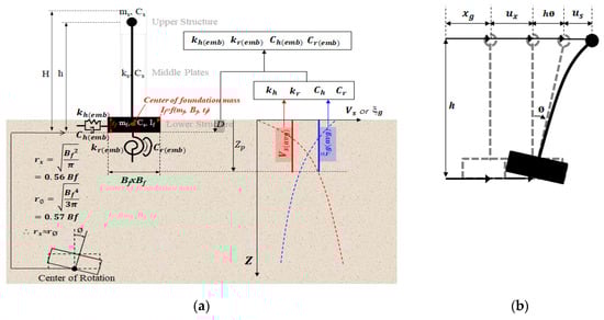 To obtain detailed structural responses, the equation of motion (EOM) of the soil–structure system that considers the aforementioned three degree-of-freedom (3DOF) is expressed by Equation (1) [8,9,20].