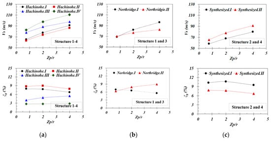 and are determined by the effective profile depth and determined by the effective height affects . Given that and affect the soil–spring constants and damping coefficients, the number of the analysis cases were set as follows: