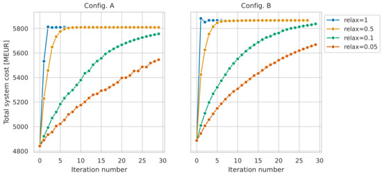 When hard-linking models (“formal linking”), the models are fully integrated and used to solve a simultaneous optimization problem, i.e., the constituent models are merged into a single model with a single objective function (compare multi-objective optimization). An alternative to this approach is so-called soft-linking (“informal linking”), which is characterized by an iterative process where the models are optimized or solved separately and data are then exchanged between the models. According to [70], the main advantages of soft-linking are practicality, transparency, and learning, and those of hard-linking are productivity, uniqueness, and control. Hard-linking often implies a simplified description of one or both of the sub-models, whereas soft-linking enables the complexities of even relatively large sub-models to be kept more or less intact [71,72]. Furthermore, soft-linking provides flexibility regarding the choice of interacting models and has been shown to work successfully for the linking of marked-based (PE or CGE) models with techno-economic energy system models [73,74,75]. Soft-linking thus offers the potential to combine the respective strengths of a detailed technology representation in energy system models, with the market price formation in PE models.