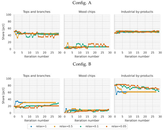 Theoretically, the data iterated between the models will eventually converge (defined as the difference between output data from iteration N and N − 1). However, given the structure of the framework, with separate models interconnected through soft-linking, convergence issues may arise. If the supply chain model responds to the changes in prices and production levels with substantial changes to supply chain configurations, the model solutions may diverge. This can be handled by applying an under-relaxation factor, by which the changes in output prices and production levels from the market model between the iterations are decreased by a specified factor. This means that if, e.g., the feedstock prices and production levels increase a lot between two iterations, the feedback to the supply chain model is lowered by a certain factor, compared to the actual output data from the market model.