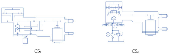 Through Step E1–Step E3, the risk value of the above two CSs can be obtained, and the speed control performance objective (PO) and economic objective (CO) can be set. For the objective CO, three experts judge it by fuzzy number, and obtain the average value of multiple TFNs. For the objective PO, the physical model-based graphical modeling software AMESim [53] is used to realize the preliminary simulation of the CS. AMESim software can effectively analyze the performance value of early design schemes without the modeling advantage of detailed structural parameters, as shown in Figure 16.