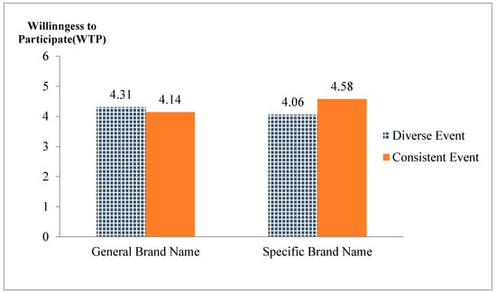 The effect of brand name and event type on willingness to participate (WTP).