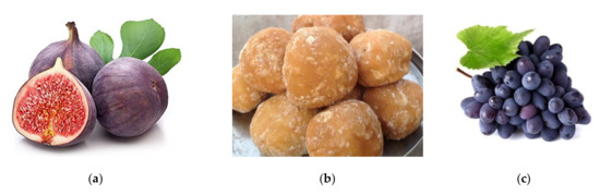Five different organics were used for the preparation of organic mortars, namely fig, jaggery, black grape, banana, and kadukai (Figure 6, Table 2).