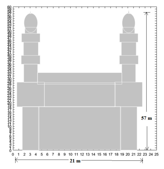 Such lightning models have been applied also in heritage monuments studies [30]; simulation studies have established the role played by the skin depth and the spectrum of lightning frequencies on the impact of a lightning strike on structures. Furthermore, such studies have also computed and analyzed the typical skin depth of mortars at a frequency of 10 kHz, which was observed to be about a few meters (6 to 8 m), and the resistance of the mortar slab was observed to be about a few hundred ohms.