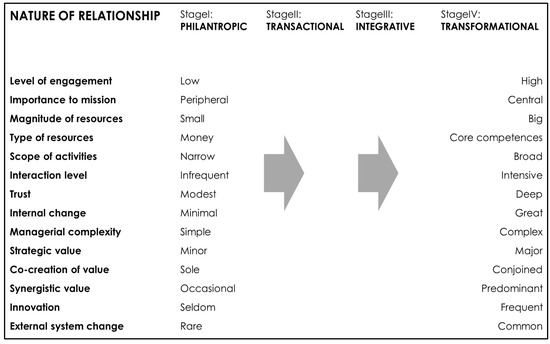 - Austin, J.E.; Seitanidi, M.M. Collaborative Value Creation: A Review of Partnering between Nonprofits and Businesses: Part I. Value Creation Spectrum and Collaboration Stages. Nonprofit Volunt. Sect. Q. 2012, 41, 726–758. [Google Scholar] [CrossRef]