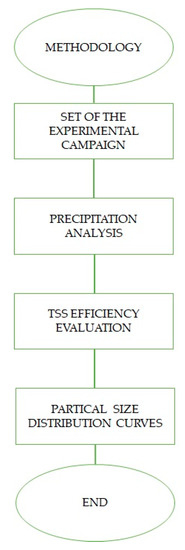 In order to characterize the pollutants, the particle-size distribution (PSD) must be analyzed. Therefore, information about influent PM PSD is useful for defining which treatment (physical or chemical) is the most effective one for removing targeted pollutants [26]. To mitigate PM inflows into receiving water bodies, Unit Operations (UOs) are utilized to separate PM from stormwater, primarily by discrete particle Type I sedimentation [27,28].