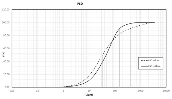 In Figure 9 the particle-size distribution (PSD) curves for inflow to and outflow from the sedimentation tank are plotted.
