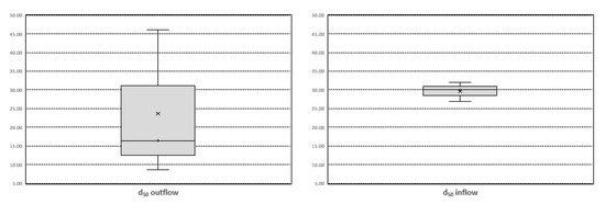 Figure 12. Statistical analysis for d50. - Greater variability of the characteristic diameter d50 measured in the outlet section (Figure 12);