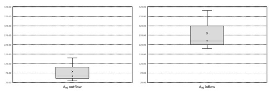 - Minimum variability of the characteristic diameter d50 measured in the inlet section (Figure 12);