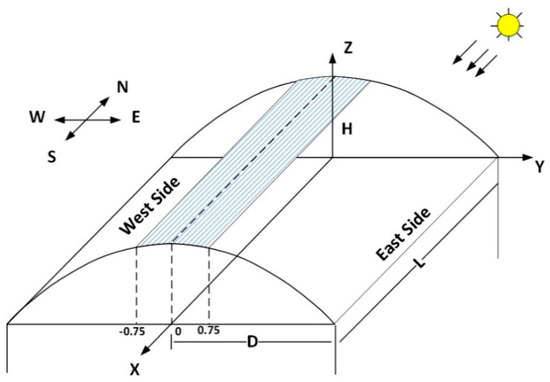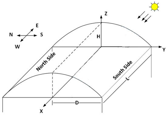 - Sethi, V.P. On the selection of shape and orientation of a greenhouse: Thermal modeling and experimental validation. Sol. Energy 2009, 83, 21–38. [Google Scholar] [CrossRef]