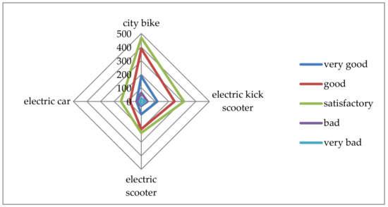 The following criteria were adopted to support decision-making in shaping sharing mobility in metropolitan areas: transport safety, qualitative, financial, and ecological. The main factor influencing the inclusion of these aspects was their overall importance in any decision-making process. Costs are a criterion that determines the possibility of implementing a specific solution. In turn, security is very important for many stakeholder groups. Designers cannot develop solutions that contribute to the deterioration of the level of safety, because they are responsible for them. Policymakers, on the other hand, treat safety as a goal to improve the quality of life (especially in metropolitan areas), similarly to a society for which the level of security is a direct determinant of the choice of a given means of transport in the implementation of travel in specific relationships. The quality is also of similar importance, which according to numerous studies is an important transport demand [12,13,91]. On the other hand, environmental conditions are, in turn, essential in almost every aspect of human life.