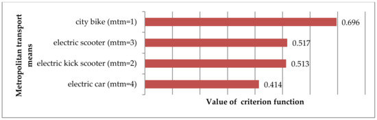 Finally, stage IV covered the estimation of survey results mainly connected with the ranking of metropolitan-transport-means-based sharing mobility obtained. Further conclusions related to usability and universality of the metropolitan transport means selection model was made.