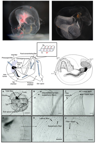 - Flood, P.R.; Deibel, D. The Appendicularian House. In The Biology of Pelagic Tunicates; Bone, Q., Ed.; Oxford University Press: New York, NY, USA, 1998; pp. 105–124. [Google Scholar]