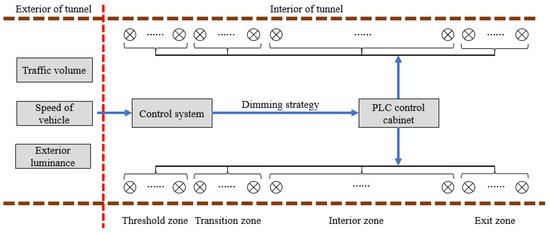 - Qin, L.; Dong, L.; Xu, W.; Zhang, L.; Yan, Q.; Chen, X. A “vehicle in, light brightens; vehicle out, light darkens” energy-saving control system of highway tunnel lighting. Tunn. Undergr. Space Technol. 2017, 66, 147–156. [Google Scholar] [CrossRef]