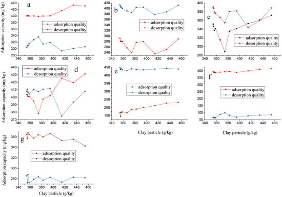 The adsorption and desorption capacities of Pb (a), Cd (b), Zn (c), Cu (d), Cr (e), Hg (f) and As (g) at different clay on soil material.