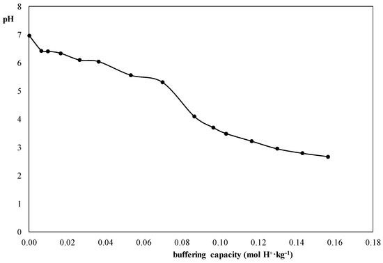 According to the results obtained for the ANC test, the pH decreases with small acid quantities, which reveals a lack of buffering capacity in CONSO, as Figure 1 shows. The natural pH of the polluted soil started at pH around 7.0 and after adding a very little amount of HNO3 1M the pH dropped down. Then, the remediation of CONSO using LG-MgO as an alkaline stabilizing agent was evident due to (i) the natural pH obtained (6.95), (ii) the low buffering capacity showed in Figure 1, and (iii) the release of metal(loid)s shown in Table 1.