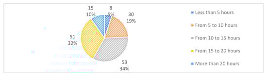 In this case, the relation between ASD classroom and mainstream classroom is analysed according to the number of hours students spend in their mainstream classroom. According to guidelines of the Community of Madrid, ASD students should spend more than half of their school day in their mainstream classroom. Figure 4 shows that some 76% comply with this recommendation; 34% of ASD students spend between 10 and 15 h in their mainstream classroom, while 32% spend between 15 to 20 h and 10% spend less than 5 h per week in the ASD classroom. However, 24% of ASD students do not comply with these guidelines; 19% spend between 5 and 10 h in their mainstream classroom and 5% spend 20 h a week in the ASD classroom.