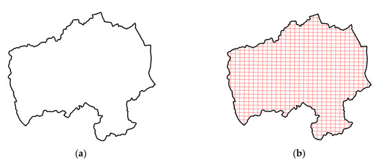 Therefore, in this study, an area-based mapping method, in which the original administrative unit is divided into smaller spatial units, was implemented to obtain the information and estimate the spatial distribution of the case study area. Within the boundaries, the case study area of the city polygon, which represented the shape and location, contained various data features, and the rectangular cell girds were employed to capture the data at the municipal polygon scale into a smaller spatial grid unit, as illustrated in Figure 2.