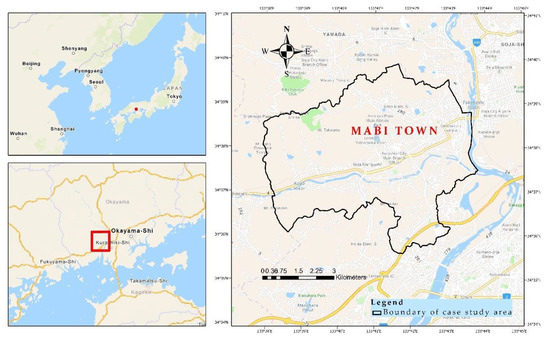 Location of the case study area, Mabi town, in Japan.