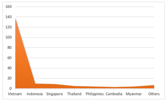 In Section (ii)–(iv), the respondents rated the answers using a five-point Likert scale: strongly disagree (1), disagree (2), neutral (3), agree (4) and strongly agree (5). The questionnaires were sent to workers in the construction sector in ASEAN member countries. A total of 180 respondents completed the survey, including government authorities, owners, contractors, project managers, supervision consultants, BIM managers, BIM coordinators, BIM modelers, architects and engineers who work for public organizations, nongovernmental organizations, BIM consulting firms, construction management consulting firms, design consulting firms and universities from seven countries: Vietnam, Indonesia, Singapore, Thailand, the Philippines, Cambodia and Myanmar. Figure 4 illustrates the allocation of respondents according to the nation of work.