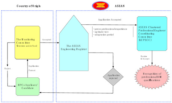 Regional integration plays a crucial role in driving economic and social development in many regions of the world. The member countries of the Association of Southeast Asian Nations (ASEAN) have signed a mutual recognition agreement on engineering consultancy services (including services in the construction industry) since 2005 for recognizing the development of human resources. ASEAN Mutual Recognition Arrangements (MRAs) promote the cross-border mobility of professionals through mutual recognition of authorization, licensing or qualifications certificated by professional service suppliers [1]. As such, each ASEAN engineer has the opportunity to work in another ASEAN member country as long as he or she is recognized and granted the registration certificate as an ASEAN Chartered Professional Engineer (ACPE), which is issued by the ASEAN Federation of Engineering Organizations (AFEO) or the ASEAN Chartered Professional Engineer Coordinating Committee (ACPECC). As of March 2018, there were 2876 engineers registered as ACPEs, and the ASEAN Architect Register listed 475 architects [2]. Preexisting recognition standards, such as the Asia-Pacific Economic Cooperation (APEC) engineering initiative, contributed to the relatively quick establishment of the ASEAN engineer framework [3]. Several simulation analyses have been conducted to investigate the impact of recognizing labor mobility agreements among ASEAN member countries [1,2]. The results indicated that labor mobility and recognition in regulated professions bring opportunities for labor and have a positive impact on economic development. Other previous studies have proven that individual competencies are the fundamental building blocks of an organization’s competency. Furthermore, for human resource planning, management is the key to the development of a firm [4,5].
