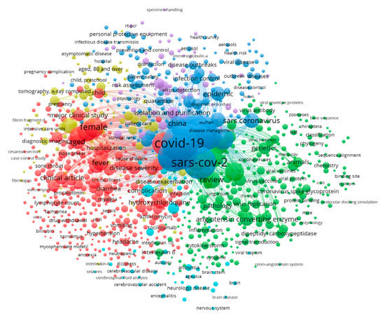 Bibliographic map of the keywords used in the published SARS-CoV-2 documents listed in the SCOPUS database (2019 to 22/07/2020).