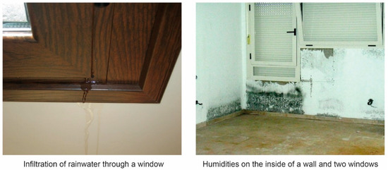 Likewise, the ‘construction typology’ of the windows with defects was also studied, being divided into ‘flats’, ‘houses’ and ‘other buildings’. Below are shown some photographic examples of some of the defects (Figure 1).