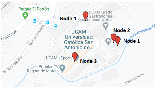 In this section, the characteristics of the deployed acoustic sensor network are firstly introduced. Then, a brief description of the campus and the location of the installed nodes is done. Finally, the performed measurement campaign is detailed.