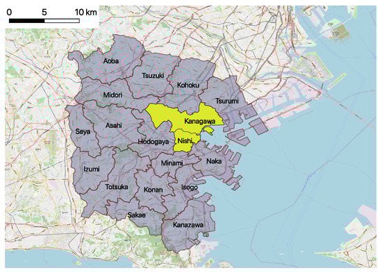 Study area: Nishi ward and Kanagawa ward.