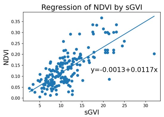 Regression of NDVI by sGVI. Explanatory variable is NDVI, and independent variable: sGVI.