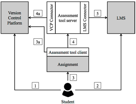 The automated student-centered assessment tool used in this case study is called autoCOREctor, and it consists of a client and a server. The tool was designed to be easily integrated with Learning Management Systems (LMSs) and Version Control Platforms (VCPs). The LMS was used to store students’ submissions and grades, which is essential for legal purposes, because learning evidence must be stored and kept in the course LMS. The VCP was employed to facilitate the management of the assignments’ problem statements and check the test suites’ integrity to avoid cheating. The main features of autoCOREctor are the following: