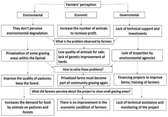 Figure 5 shows a conceptual diagram that summarizes the questions made and the information provided by the faxinalenses that were interviewed.