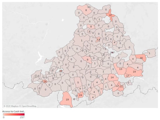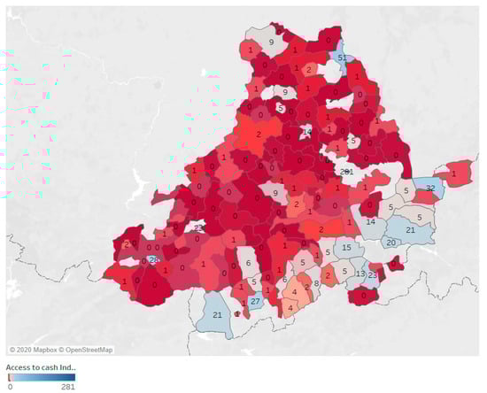 4.2. Access to Cash Index and the Detection of Vulnerable Areas