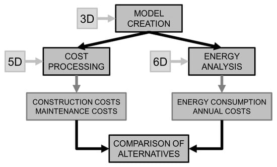 The selection of different software packages is fundamental to obtaining good interoperability between project participants. Spiridigliozzi et al. [13] conducted research in which they modelled a single dwelling of two-floor sites with Autodesk Revit®; they then imported it into the IDA Indoor Climate and Energy (IDA-ICE) simulation tool to determine the energy demand variations from one month to the next. The aim of the authors was to demonstrate how crucial good interoperability is when designers decide to perform energy analyses through BIM and building energy modeling (BEM). A similar approach was used by Tallberg and Bohne [14], who reported a BIM-based iterative energy performance simulation performed with IDA-ICE, aiming at establishing a procedure for techno-economic optimization. The authors evaluated the energy performance of a traditional apartment building designed with the Norwegian TEK-17 standards and compared the results with the recommended thermal properties given by the nZEB (nearly Zero Emission Buildings) standards. In this paper, two possible standardizations that may be helpful for designers making decisions about a building’s elements were proposed.