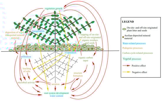 Schematic illustration of geo-ecological processes taking place in well-functioning vegetation patches. Note: Modified from Stavi et al. [34].