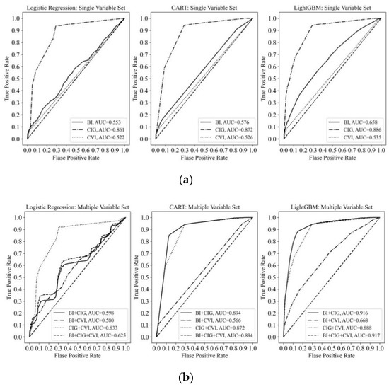 (a) AUC of different models (single variable set). (b) AUC of different models (multiple variable set). Source: Own elaboration.