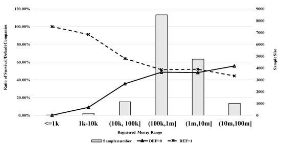 After reviewing several websites providing such information such as the China Credit, National Enterprise Credit Publicity System, China Judgments Online, and Fujian Local Judgments Online websites, the studied information was categorized into three types: basic information (BI), company credit information from the government (CIG), and court verdict information (CVI). Basic information on company age (Age), size, and industry sector has been proven relevant by [31,36]. The study in [28] argued that adding registered industry (RI) specification can increase the model prediction accuracy. In this study, company sizes are represented by registered capital, as this figure is stable and publicly available, instead of using total assets or annual revenue, which are frequently used as the measurement unit of size by researchers. The reason for using registered capital (RC) mainly lies in the fact that most of the SMEs’ financial reports are unreliable and unstable.
